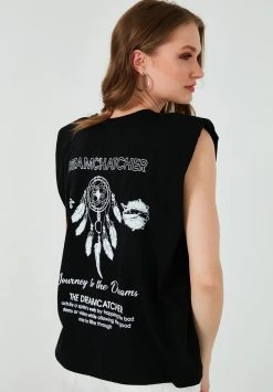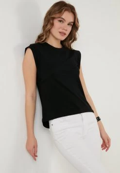 LELA CREW NECK WADDING SHOULDERS – Camiseta Estampada – Black, Mujer