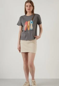 LELA CREW NECK WADDING SHOULDERS – Camiseta Estampada – Grey , Mujer